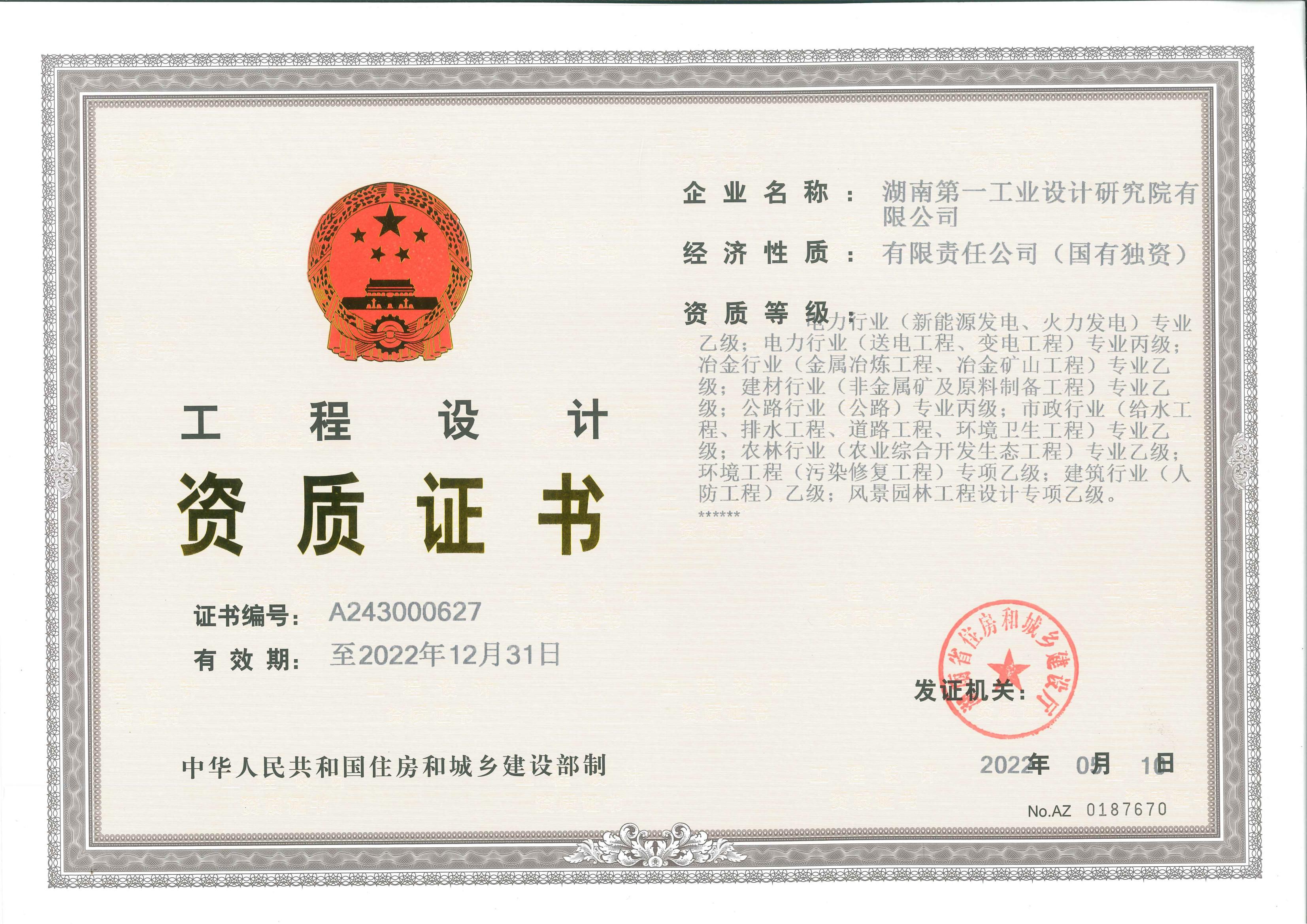 工程設(shè)計(jì)乙級(jí)資質(zhì)證書